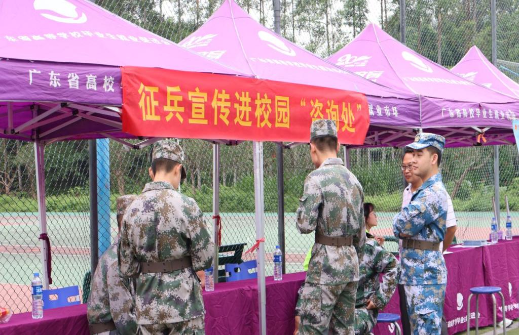 另外,依据《广东省教育厅关于做好大学毕业生士兵预征工作通知》要求,学校学工部征兵办公室在现场设立征兵宣讲咨询展台。由退役复学优秀士兵现场开展大学生入伍政策宣讲、咨询及预征兵工作。招聘会现场开设置了职业生涯工作室、应急医疗点、公积金宣传台以及总服务台等,为毕业生提供全方位服务。