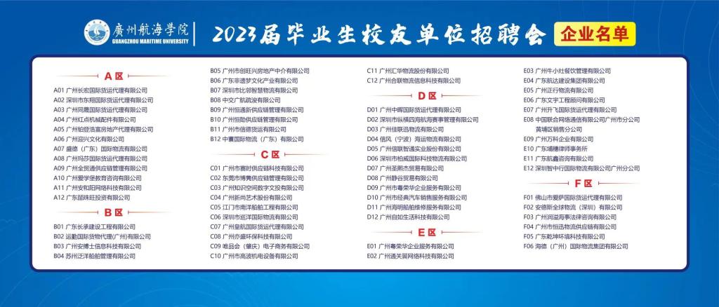 2023年5月21日明胜m88官网毕业生校友企业专场企业展位号公示