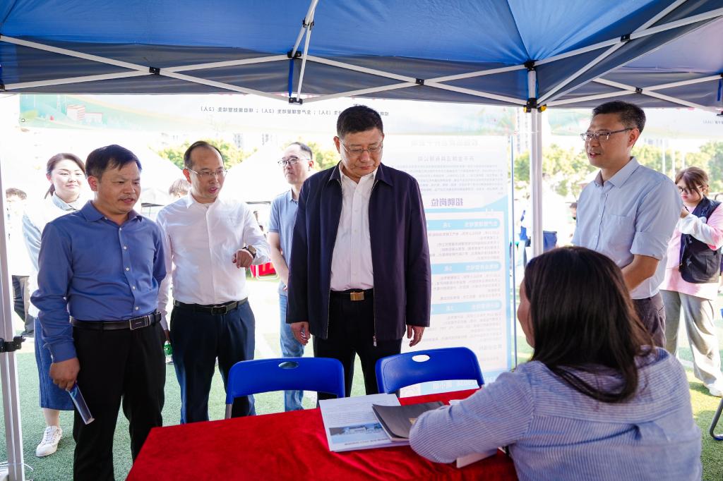 招聘双选会特别得到了开平市人力资源和社会保障局、广州市高校毕业生就业指导中心的鼎力支持,分别推荐参展单位22家和44家。广州市高校毕业生就业指导中心在招聘双选会现场设立了“AI修改简历”和“AI模拟面试”专区,吸引了许多同学体验与咨询。开平市是我校落实广东省委“双百行动”的对接共建单位,此次由开平市人力资源和社会保障局党组书记谭健勇带队,组团在招聘会现场设立“开平市招聘专区”,是我校与开平市落实“双百行动”,实现学校人才培养与区域产业链对接,助力开平市产业高质量发展的重要举措。