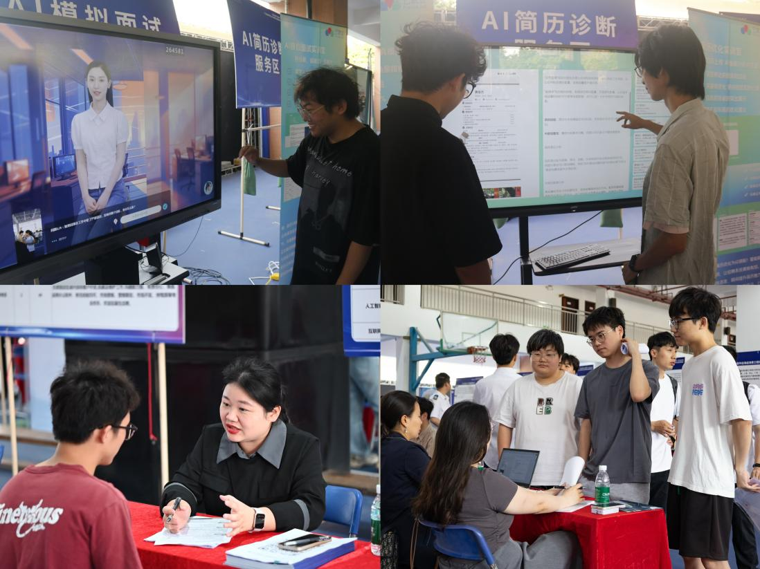本次招聘活动有三大亮点。一是搭建多元就业平台。毕业生就业指导中心与广州市人力资源和社会保障局等单位建立岗位信息共享机制,吸引省级以上专精特新企业17家、高新技术与跨国企业23家参与招聘,搭建起以航运物流(56.9%)、机械制造(18%)为主导的多维岗位招聘矩阵。二是创新智慧服务模式。招聘会特别设立“AI赋能就业区”,毕业生只需一键扫码上传简历,3分钟内即可完成简历诊断,还可与数字人面试官进行模拟面试,打造了“诊断-优化-模拟”全链条智慧服务体系。三是精准对接学生需求。有850余名毕业生到场求职,共投递简历 2124份次,开展现场面试1700人次,达成初步就业意向170余人。