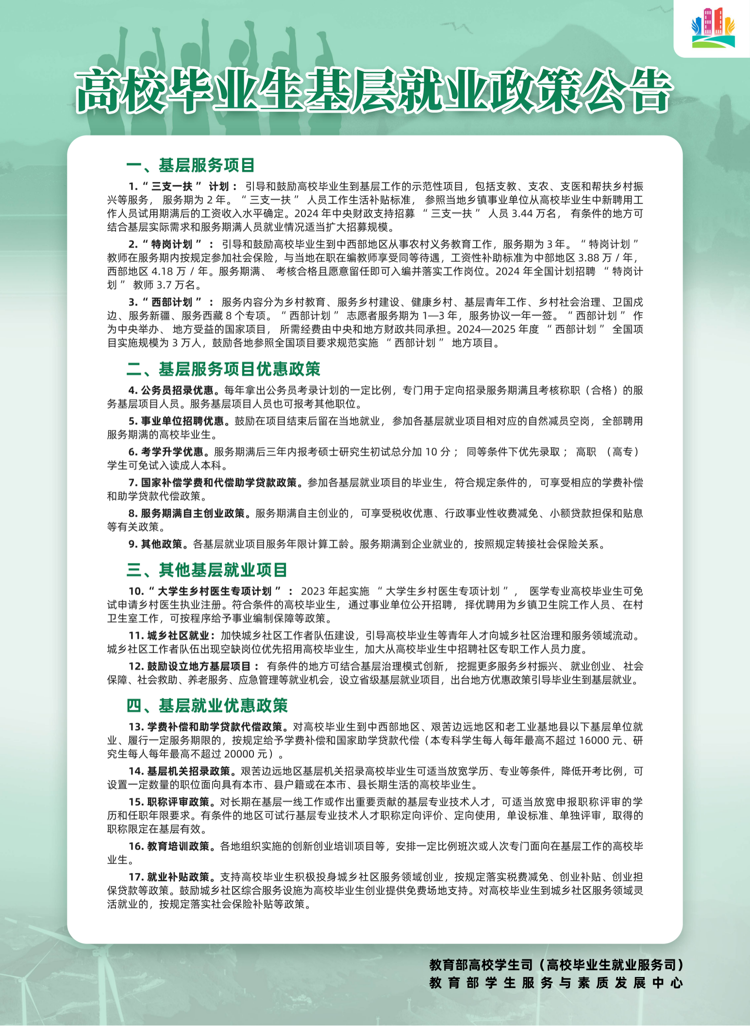 明胜m88官网毕业生基层就业政策公告