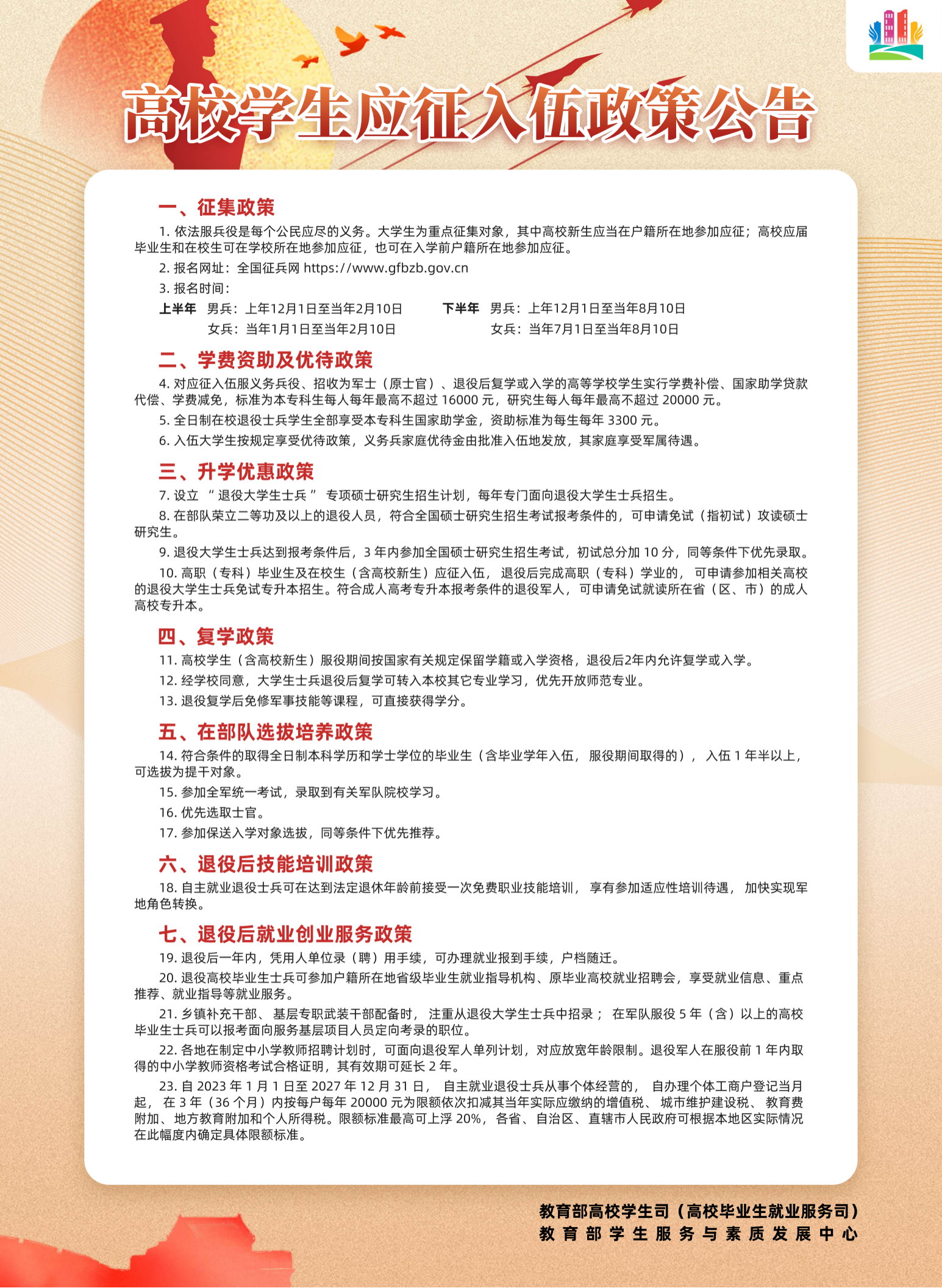 明胜m88官网学生应征入伍政策公告