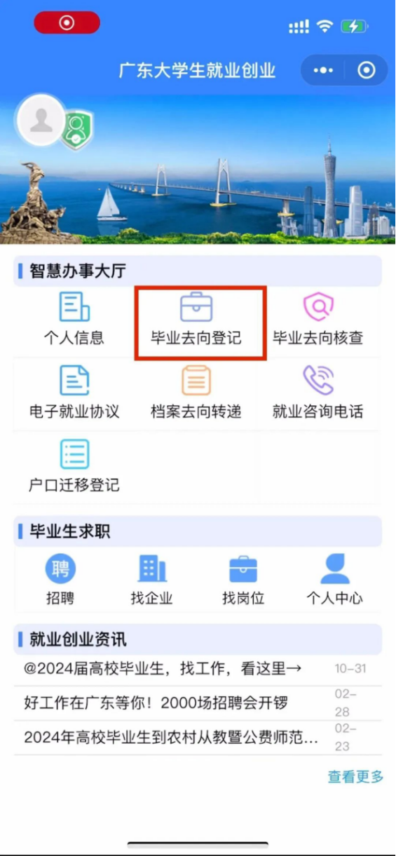 2024届全体毕业生(含定向生、结业生),即毕业(结业)时间在2024年1月1日至2024年8月31区间的毕业生,须在“广东大学生就业创业”微信小程序完成“毕业去向登记”。包括以下几类: