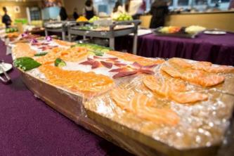 6、公司星级餐厅提供专业膳食搭配的自助三餐,每周及节日均有美食节。