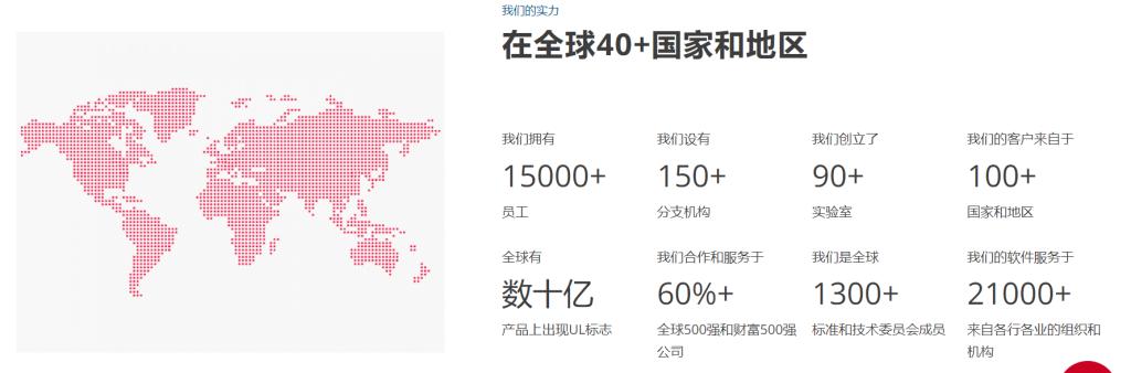 为中国品牌助力创新,走向世界UL Solutions进入中国四十多年来,已在全国拥有2400多名员工,设有12个分支机构以及众多获得UL认可的第三方合作实验室和客户实验室,服务于超过22,000家客户,为中国企业的全球化高质量发展提供与时俱进的创新安全解决方案。