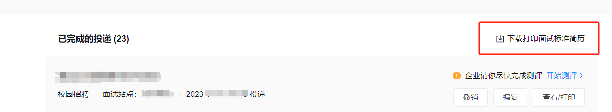 打印路径:电脑登录https://gzmetro.zhiye.com/login - 用户登录 - 投递记录下点击【下载打印面试标准简历】