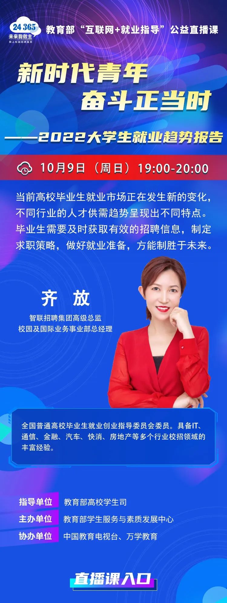 明胜m88官网 | 教育部24365就业公益直播课:新时代青年 奋斗正当时——2022大学生就业趋势报告