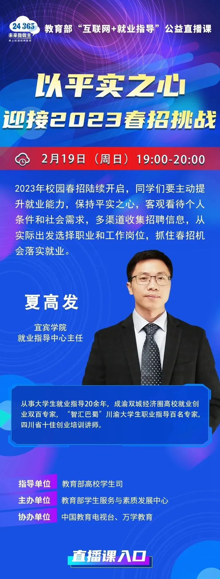 明胜m88官网 | 教育部24365就业公益直播课:以平实之心,迎接2023春招挑战