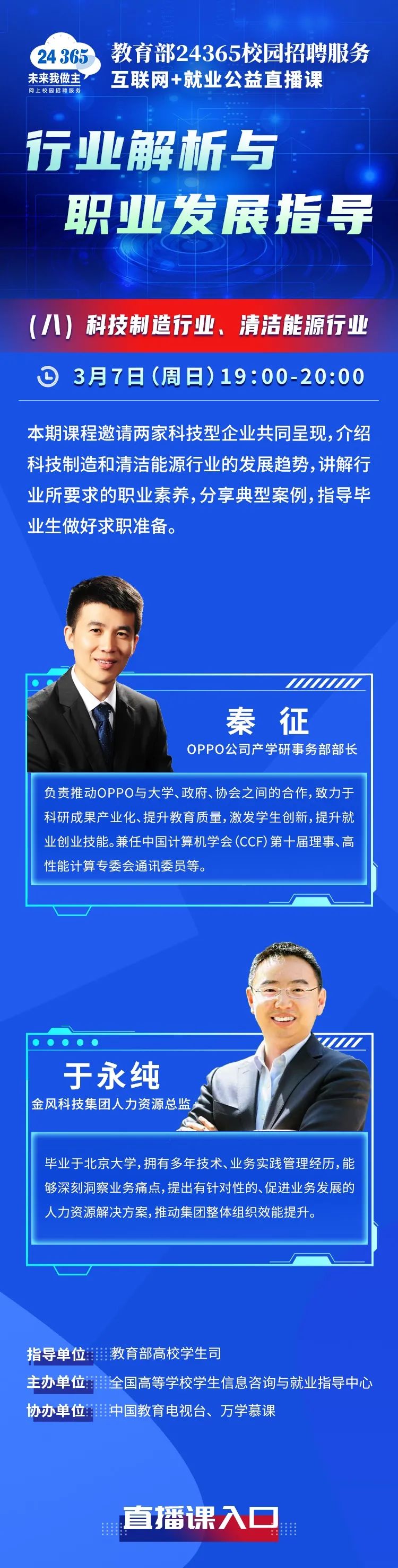 明胜m88官网 | 教育部24365就业公益直播课:行业解析与职业发展指导(八)科技制造行业、清洁能源行业