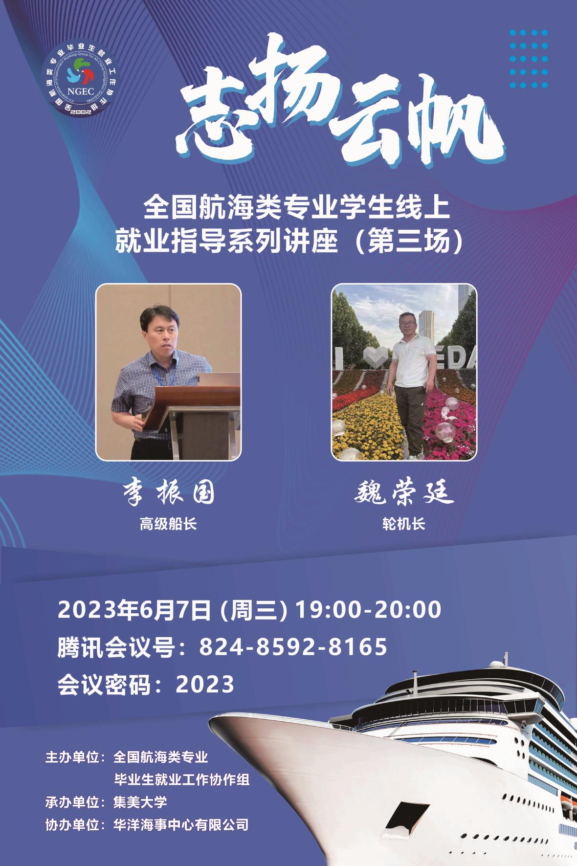 【讲座预告 | 全国航海类专业学生线上就业指导系列讲座(第三场)】
