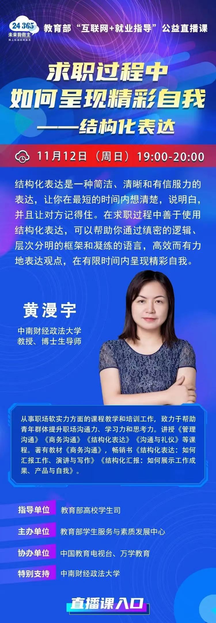 教育部“互联网+就业指导”公益直播课 求职过程中如何呈现精彩自我---结构化表达
