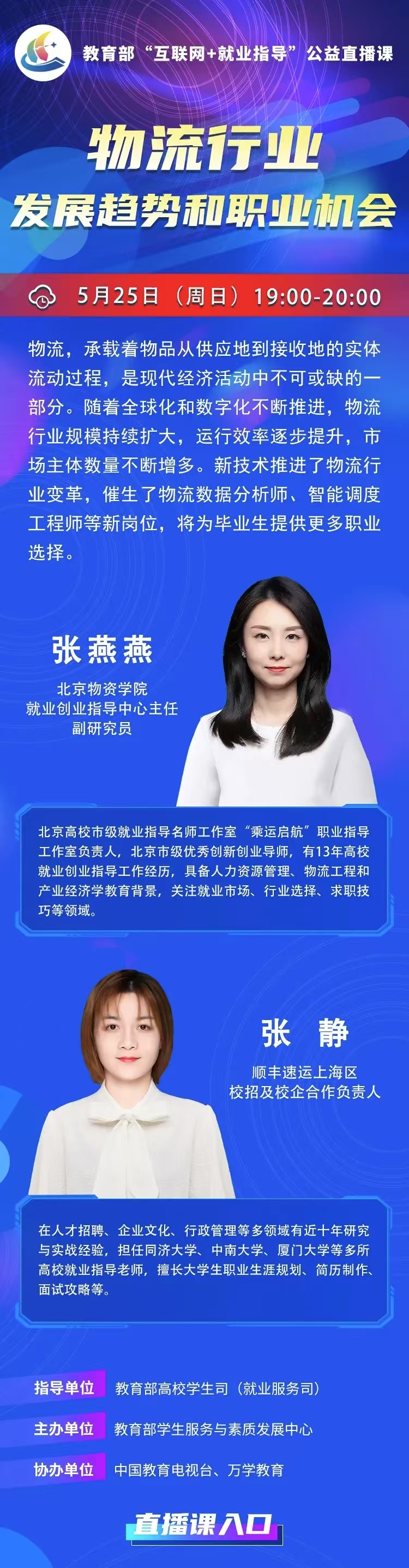 明胜m88官网 | 教育部“互联网+就业指导”公益直播课:物流行业发展趋势和职业机会